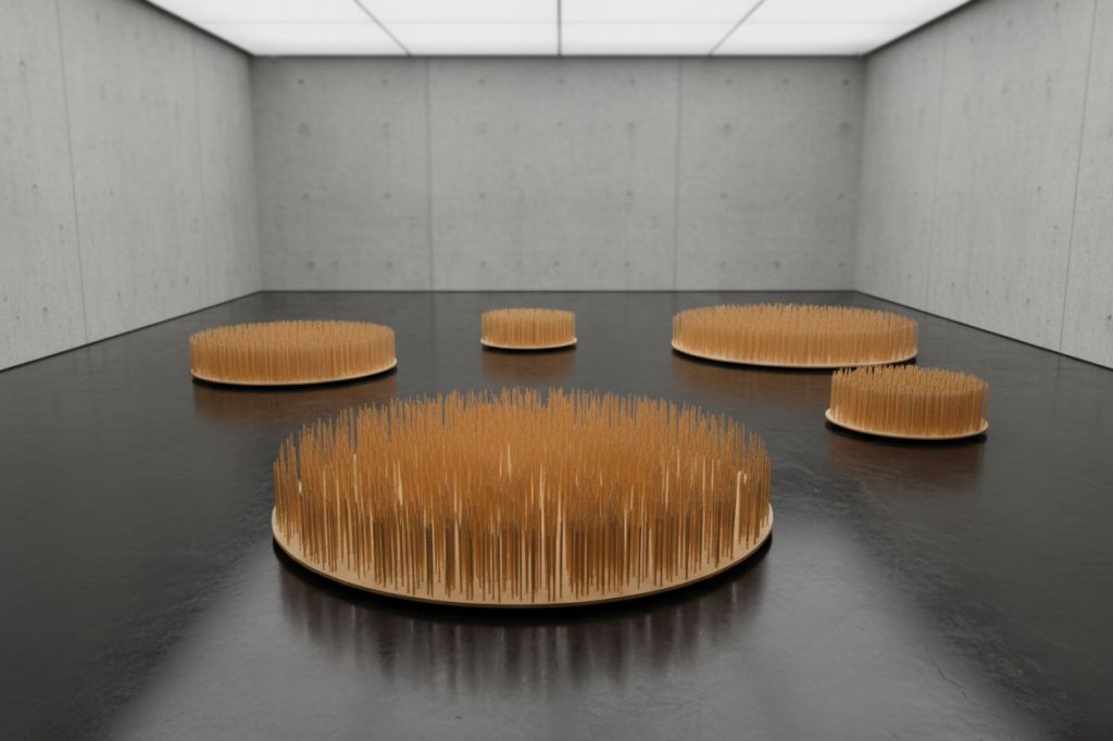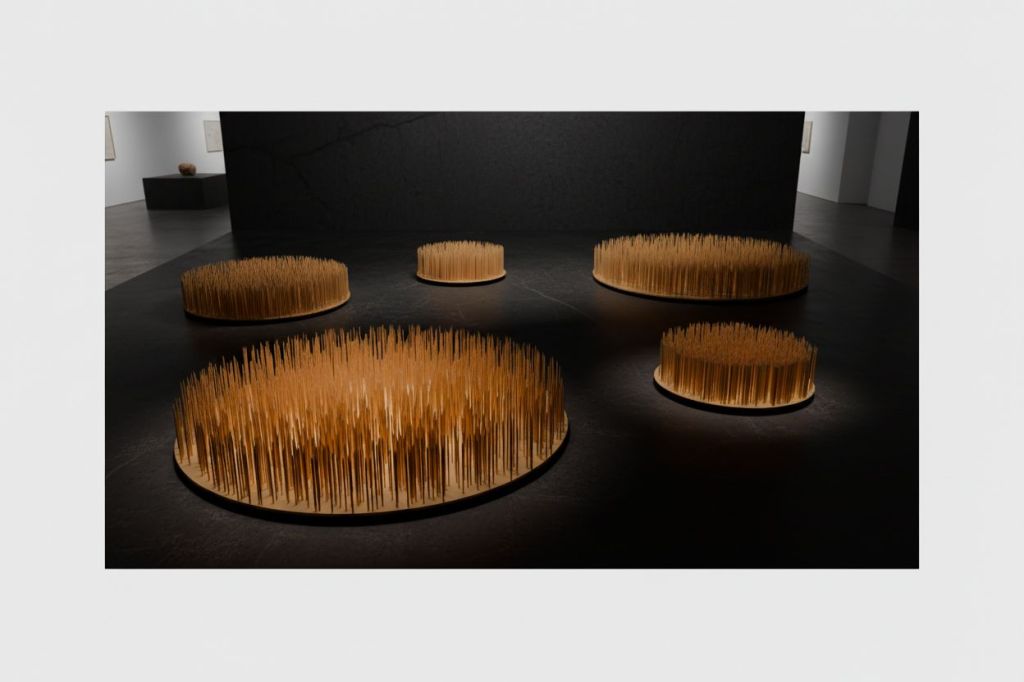 The title plays with Bulgarian language – warm and, at the same time, a little funny and a little uncomfortable, as childhood memories often are. The project explores the forest as a symbol of memory and tradition, but also as a space in which humor can be a gateway to what is lost. Inspired by the image of my grandmother who was spinning, I enlarge a detail of one distaff dozens of times, turning it into a more than two-meter “forest”. The personal memory becomes a collective metaphor, and the disappeared craft – a monument. The question of what is lost is intertwined with the playful wink of the title: nothing is completely lost, if we can smile at it and recreate it. This first work on the topic inspired me to embark on a new journey into the history of this traditional craft and to explore how cultural memory works.
